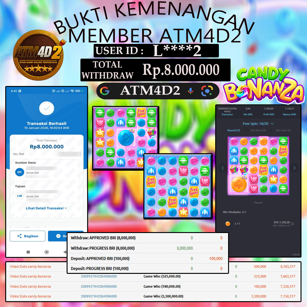 ATM4D2 dikenal sebagai situs terpercaya yang selalu menghadirkan pengalaman bermain slot online yang aman, fair, dan berlisensi resmi. Di sini, kami tidak hanya sekadar memberikan janji, tapi bukti nyata berupa slip kemenangan yang dapat Anda lihat secara langsung.