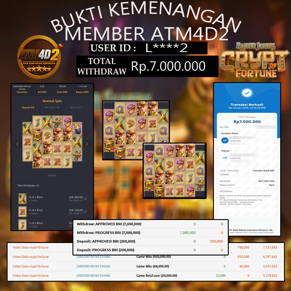 ATM4D2 dikenal sebagai situs terpercaya yang selalu menghadirkan pengalaman bermain slot online yang aman, fair, dan berlisensi resmi. Di sini, kami tidak hanya sekadar memberikan janji, tapi bukti nyata berupa slip kemenangan yang dapat Anda lihat secara langsung.