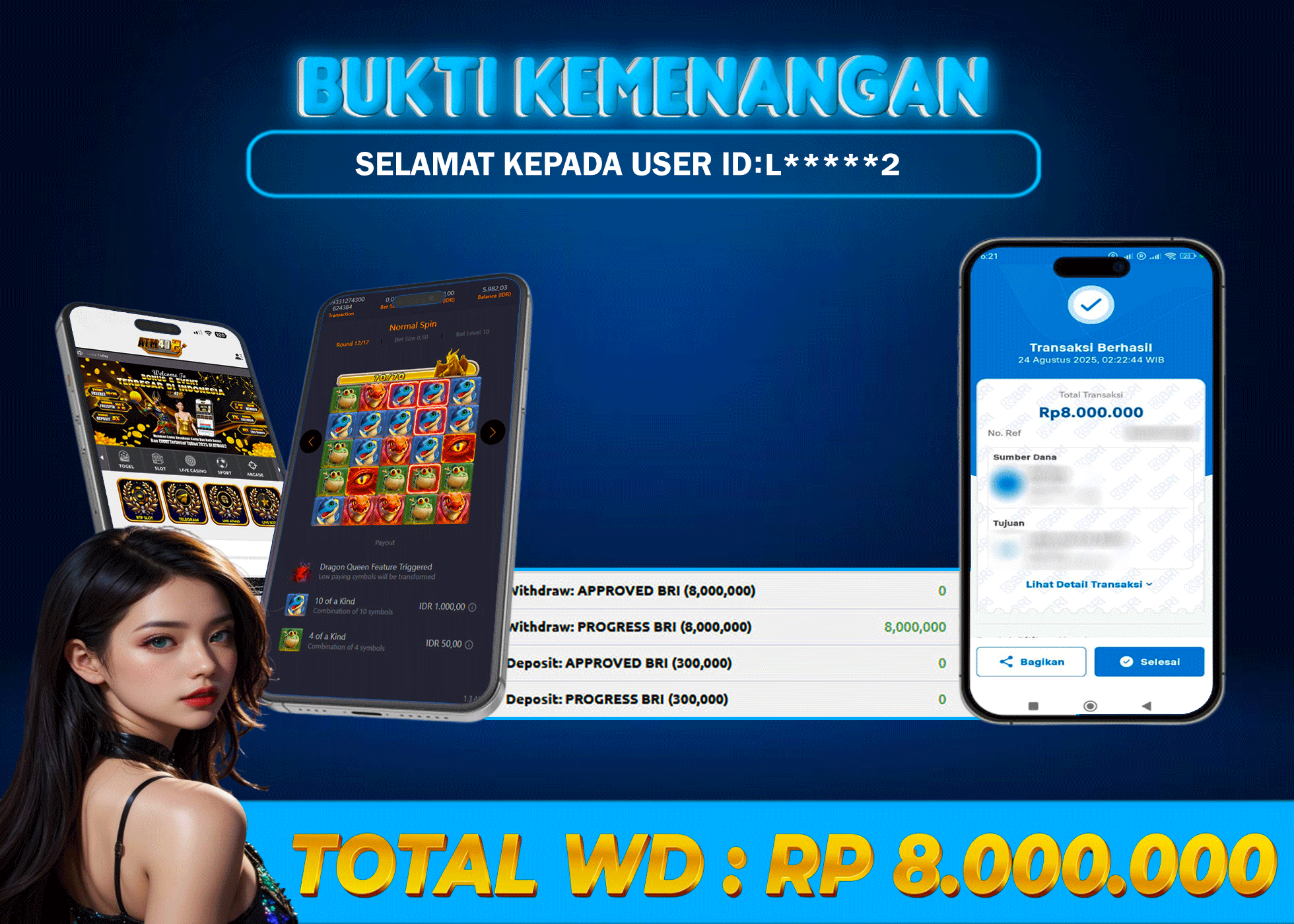 ATM4D2 dikenal sebagai situs terpercaya yang selalu menghadirkan pengalaman bermain slot online yang aman, fair, dan berlisensi resmi. Di sini, kami tidak hanya sekadar memberikan janji, tapi bukti nyata berupa slip kemenangan yang dapat Anda lihat secara langsung.