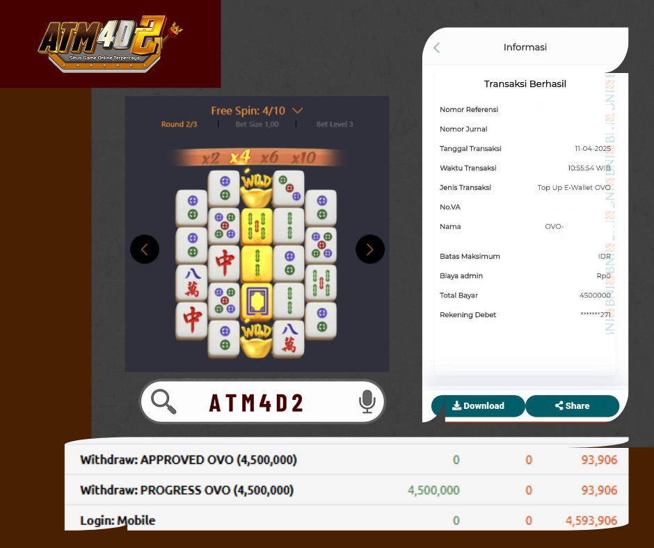 ATM4D2 dikenal sebagai situs terpercaya yang selalu menghadirkan pengalaman bermain slot online yang aman, fair, dan berlisensi resmi. Di sini, kami tidak hanya sekadar memberikan janji, tapi bukti nyata berupa slip kemenangan yang dapat Anda lihat secara langsung.