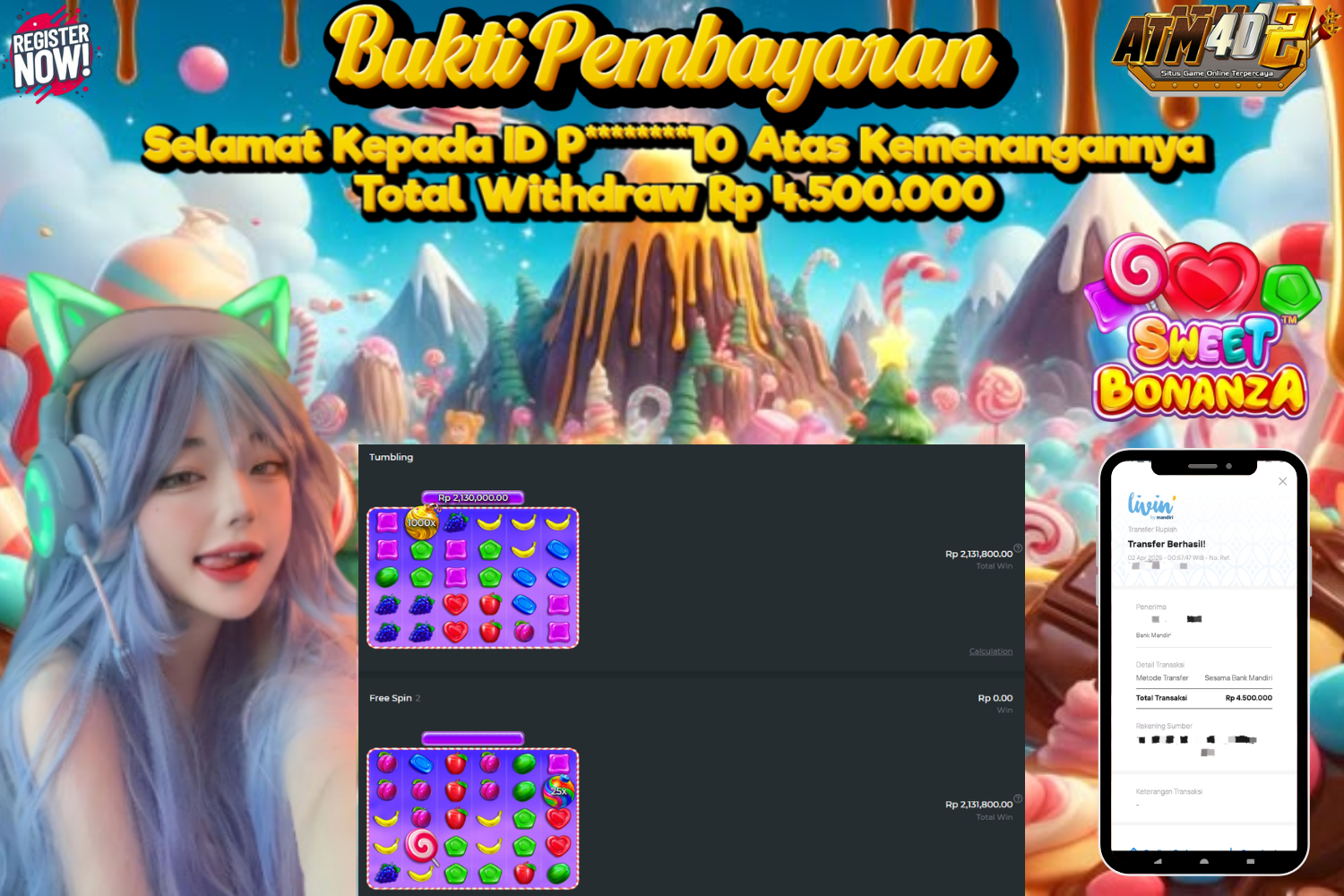 ATM4D2 dikenal sebagai situs terpercaya yang selalu menghadirkan pengalaman bermain slot online yang aman, fair, dan berlisensi resmi. Di sini, kami tidak hanya sekadar memberikan janji, tapi bukti nyata berupa slip kemenangan yang dapat Anda lihat secara langsung.