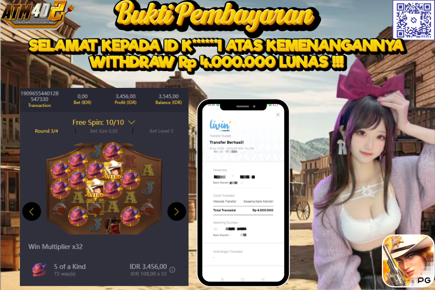 ATM4D2 dikenal sebagai situs terpercaya yang selalu menghadirkan pengalaman bermain slot online yang aman, fair, dan berlisensi resmi. Di sini, kami tidak hanya sekadar memberikan janji, tapi bukti nyata berupa slip kemenangan yang dapat Anda lihat secara langsung.