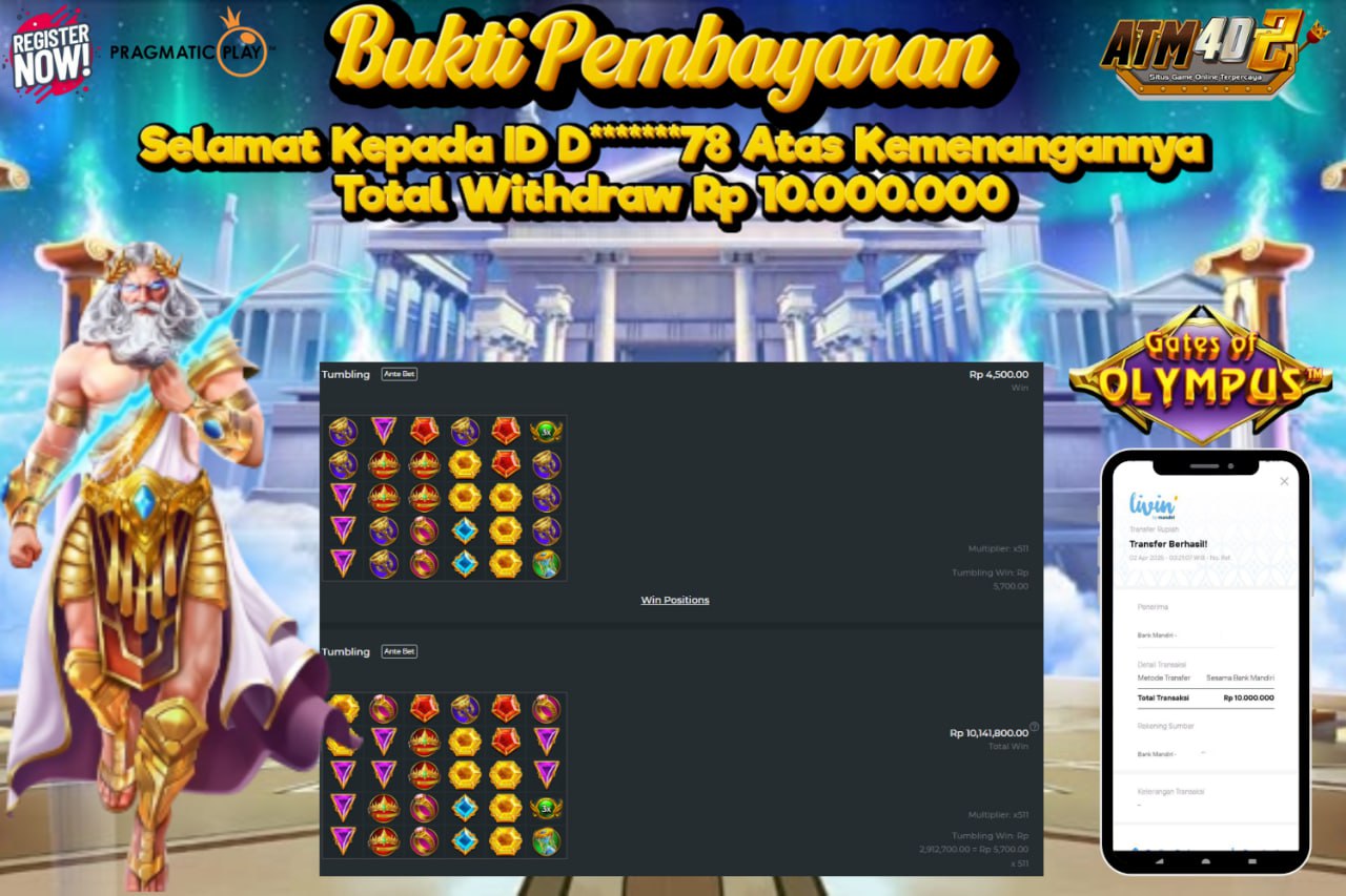 ATM4D2 dikenal sebagai situs terpercaya yang selalu menghadirkan pengalaman bermain slot online yang aman, fair, dan berlisensi resmi. Di sini, kami tidak hanya sekadar memberikan janji, tapi bukti nyata berupa slip kemenangan yang dapat Anda lihat secara langsung.