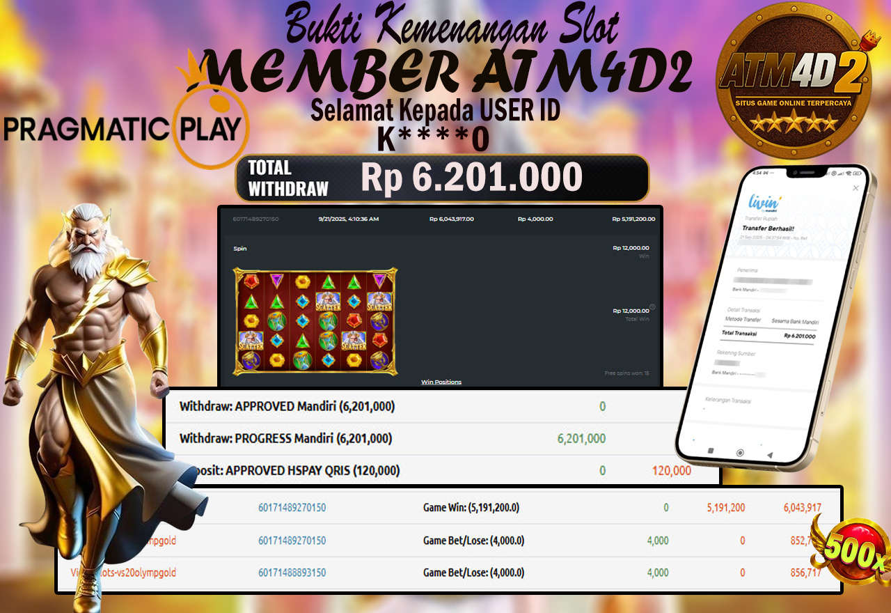 ATM4D2 dikenal sebagai situs terpercaya yang selalu menghadirkan pengalaman bermain slot online yang aman, fair, dan berlisensi resmi. Di sini, kami tidak hanya sekadar memberikan janji, tapi bukti nyata berupa slip kemenangan yang dapat Anda lihat secara langsung.