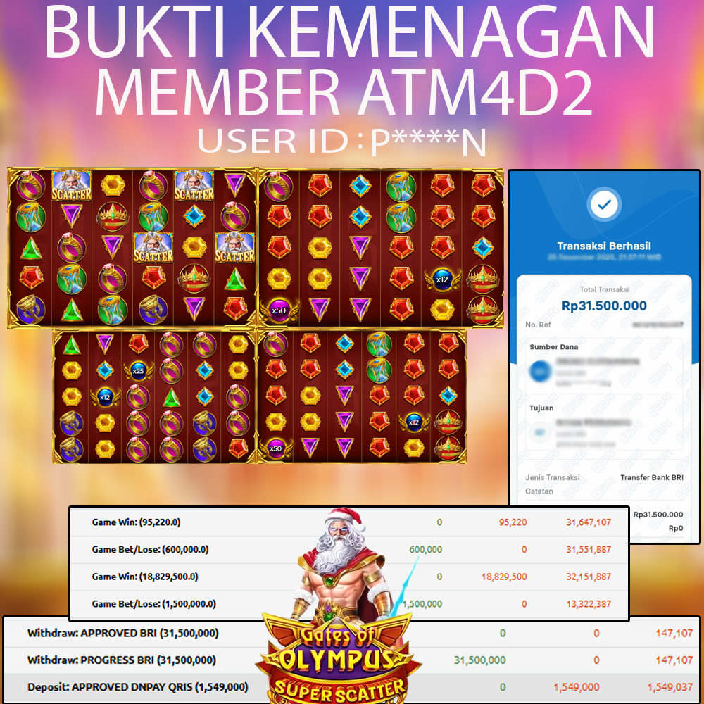 ATM4D2 dikenal sebagai situs terpercaya yang selalu menghadirkan pengalaman bermain slot online yang aman, fair, dan berlisensi resmi. Di sini, kami tidak hanya sekadar memberikan janji, tapi bukti nyata berupa slip kemenangan yang dapat Anda lihat secara langsung.