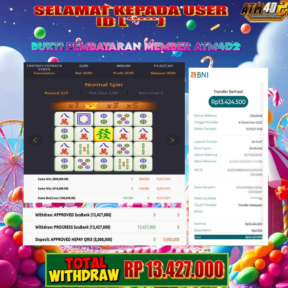 ATM4D2 dikenal sebagai situs terpercaya yang selalu menghadirkan pengalaman bermain slot online yang aman, fair, dan berlisensi resmi. Di sini, kami tidak hanya sekadar memberikan janji, tapi bukti nyata berupa slip kemenangan yang dapat Anda lihat secara langsung.