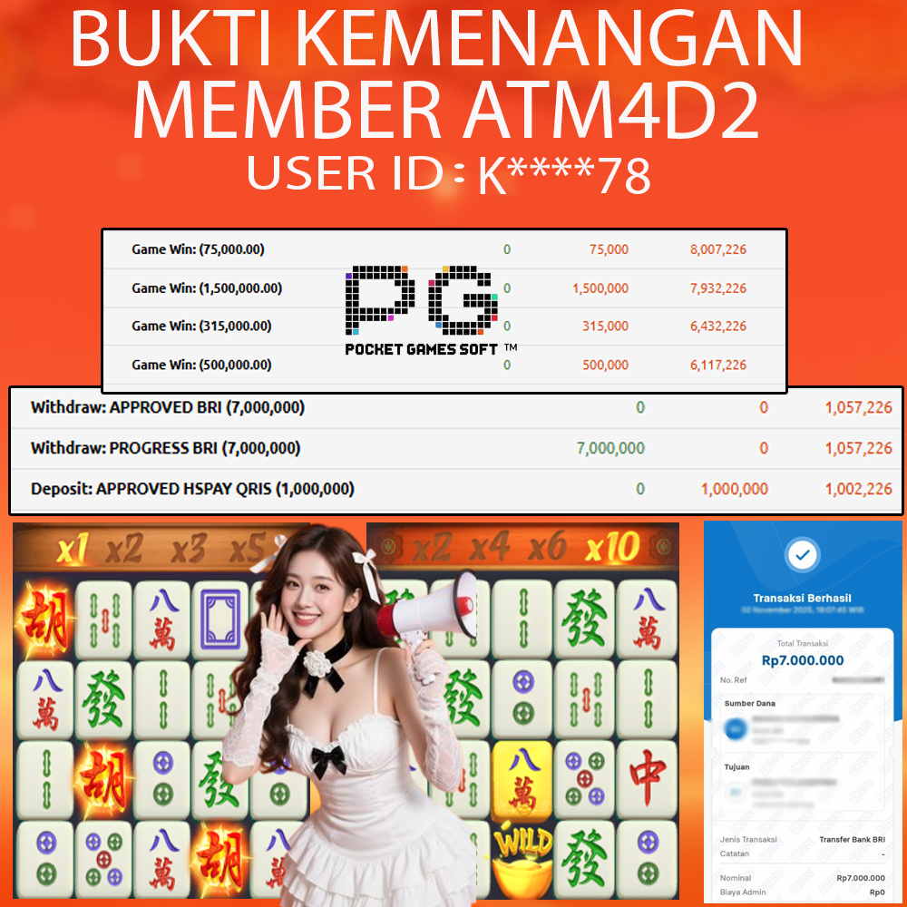 ATM4D2 dikenal sebagai situs terpercaya yang selalu menghadirkan pengalaman bermain slot online yang aman, fair, dan berlisensi resmi. Di sini, kami tidak hanya sekadar memberikan janji, tapi bukti nyata berupa slip kemenangan yang dapat Anda lihat secara langsung.