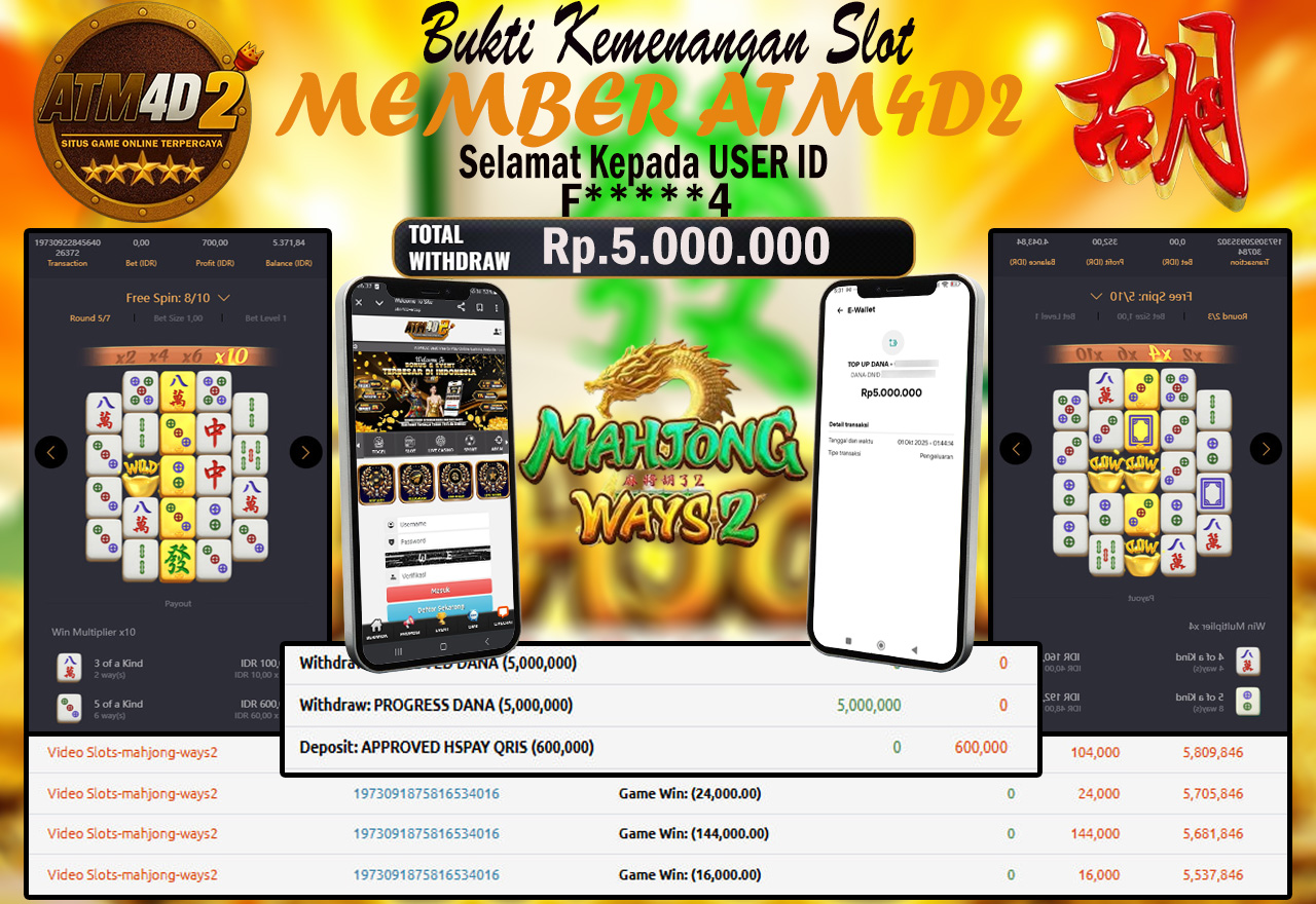ATM4D2 dikenal sebagai situs terpercaya yang selalu menghadirkan pengalaman bermain slot online yang aman, fair, dan berlisensi resmi. Di sini, kami tidak hanya sekadar memberikan janji, tapi bukti nyata berupa slip kemenangan yang dapat Anda lihat secara langsung.