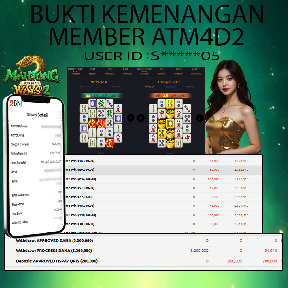 ATM4D2 dikenal sebagai situs terpercaya yang selalu menghadirkan pengalaman bermain slot online yang aman, fair, dan berlisensi resmi. Di sini, kami tidak hanya sekadar memberikan janji, tapi bukti nyata berupa slip kemenangan yang dapat Anda lihat secara langsung.