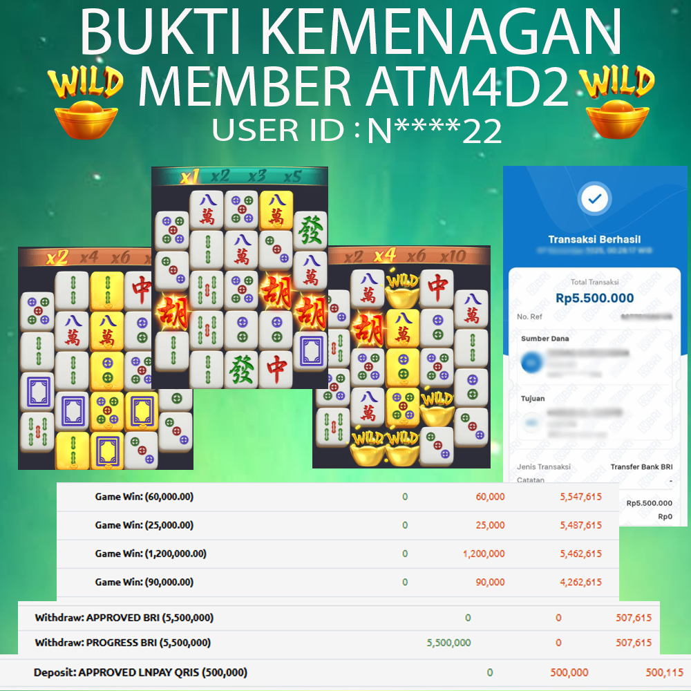 ATM4D2 dikenal sebagai situs terpercaya yang selalu menghadirkan pengalaman bermain slot online yang aman, fair, dan berlisensi resmi. Di sini, kami tidak hanya sekadar memberikan janji, tapi bukti nyata berupa slip kemenangan yang dapat Anda lihat secara langsung.