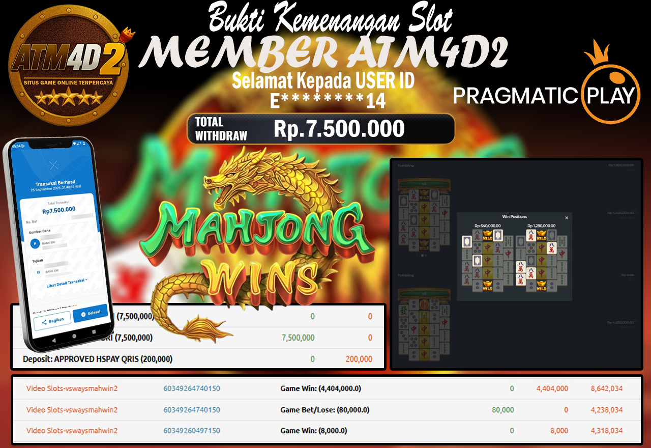 ATM4D2 dikenal sebagai situs terpercaya yang selalu menghadirkan pengalaman bermain slot online yang aman, fair, dan berlisensi resmi. Di sini, kami tidak hanya sekadar memberikan janji, tapi bukti nyata berupa slip kemenangan yang dapat Anda lihat secara langsung.